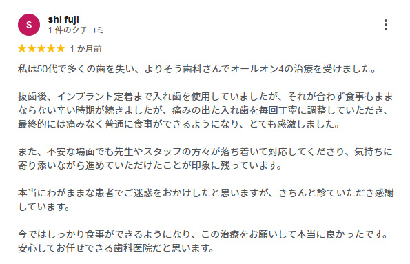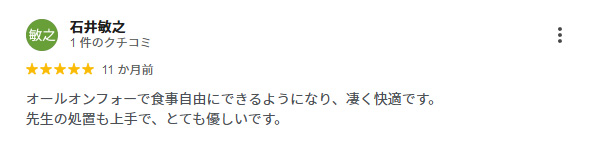 オールオン4ほどの広範囲の治療を必要としない、1〜2本を対象とするような通常のインプラントにも、もちろん対応しております